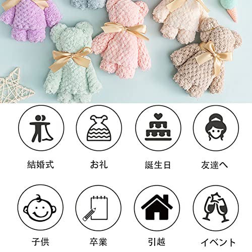 ハンカチ プチギフト くまさん タオル タオルハンカチ レディースラッピング済 レディース ギフト タオルベア クリスマス プチギフト プレゼント ハンドタオル 女性 人気 異動 引っ越し 挨拶 結婚式 誕生日 内祝い お返し 粗品 (6個セット)