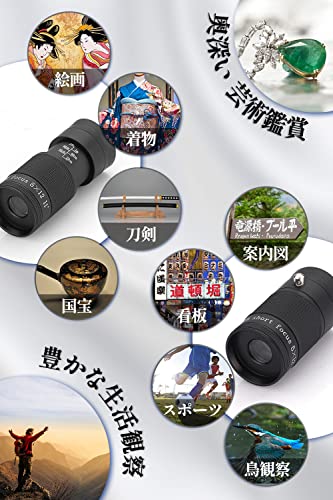 商品の説明 【奥深い芸術鑑賞の世界】5倍の美術館モデル単眼鏡は適度に広い範囲を同時に見渡すことができる倍率であるため、手ブレを起こしにくく対象が視野から外れることなく安定した鑑賞が可能。特に初心者の方にお勧めだ。また適度に拡大されるため、肉眼では観察できない美術品の細部までを鑑賞できる。また細部ではなく、普通の単眼鏡にとって、遠くの目標物を拡大できます。一つ単眼鏡は二つ機会があり、用途がもっと広くなります。 【持ち運びが苦にならないポケットサイズ】手のひらにすっぽり収まる手のひらサイズで重さも僅か65g