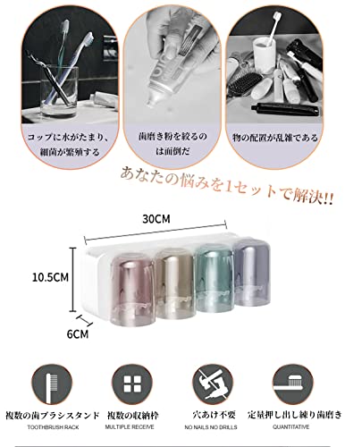 Cyoua 歯ブラシスタンド 歯ブラシホルダー 特大 壁掛け おしゃれ 歯ブラシ立て 電動歯ブラシスタンド 外せる 歯磨き粉ホルダー コップ立て 歯ブラシたて 浮かせる 収納 歯磨き コップ 洗面所 衛生 トイレタリー収納 多機能 穴あけ不要 うがいコップ 家族 長さが増す 2023新登場 (歯磨きコップ×4)