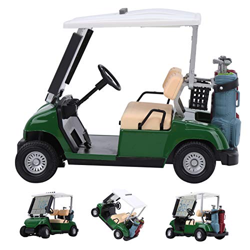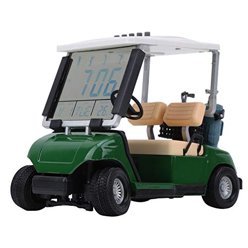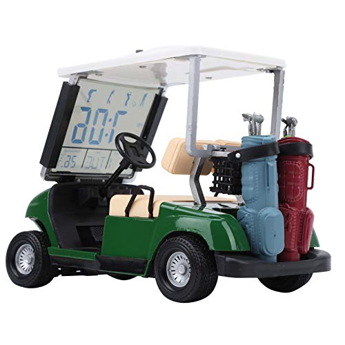 電源:75mAhボタン電池 説明:これは1:18に関連するミニゴルフカートの時計です。時間、日付、温度を表示します。カートには、可動ホイール、回転可能なステアリングホイール、ショックアブソーバー、およびクラブが配置されている2つの可動ゴルフバッグがあります。