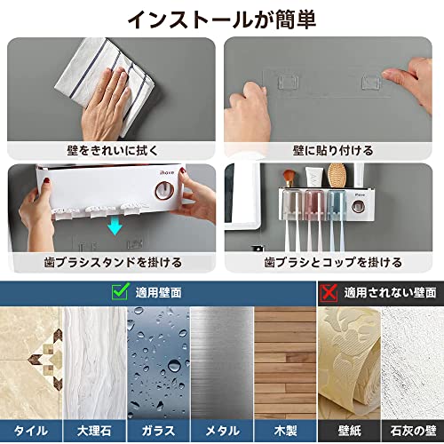 歯ブラシホルダーとトゥペーストディスペンサーだけでなく、収納トレイもあります。歯ブラシスタンドの上部の格納皿は多目的で、歯磨き粉、石鹸、櫛、化粧品、かみそりなどを置くことができ、お部屋を清潔にし、お風呂を整理するのに役立つ優れたアシスタントです。