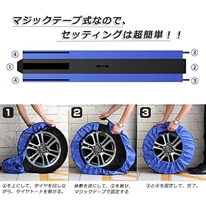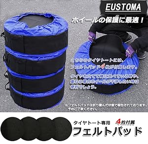 【着装簡単】 マジックテープ式だから、女性でも手軽に装着・収納可能! セッティング方法: 1、①を上にして、タイヤを回しながら、タイヤトートを被せる。 2、体勢を逆にして、②を被せ、マジックテープで固定する。 3、③と④を固定して、完了。 【フェルトパッド4枚付属】 ホコリなどから守る!! こちらのタイヤトートには、フェルトパッド4枚が付属します。タイヤを立てて横に並べている時や、重ねる場合ホイールが干渉したい時は便利でしょう! ※フェルトパッドは折り畳んだ状態で梱包されております。予めご了承ください。