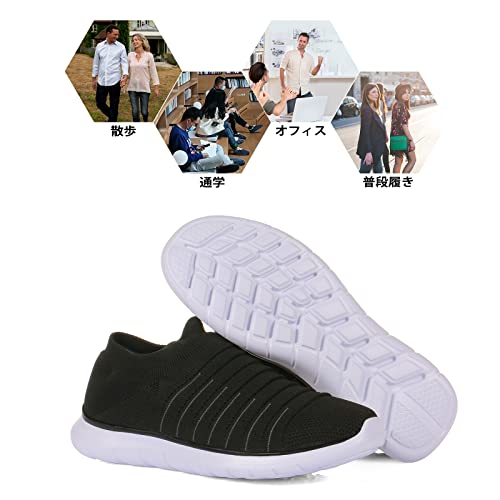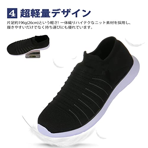 [Newdenber] 静音 スリッポン ニット 軽量 すりっぽん スニーカー メンズ 蒸れず ウォーキングシューズ 内室靴 紐なし 着脱簡単 25~30センチ