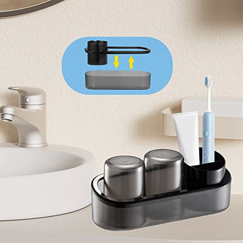 Umido 歯ブラシスタンド 壁掛け 電動歯ブラシホルダー 浮かせる おしゃれ 歯ブラシ立て 外せる バスルーム整理 ホルダーコップ棚 風呂 トイレタリー 収納 バスルームアクセサリー 多機能 歯ブラシ コップ 壁掛け 穴あけ不要 インストールが簡単 耐久性 多機能 バスルーム/トイレ/洗面台など用 小家族、恋人に最適(うがいコップ×3)
