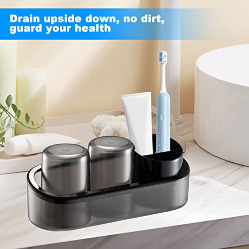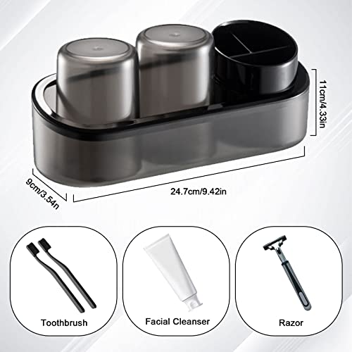 Umido 歯ブラシスタンド 歯ブラシホルダー 自動歯磨き粉ディスペンサー付き おしゃれ 歯ブラシ コップ スタンド バスルーム整理 風呂 収納 自動歯磨き粉絞り器 バスルームアクセサリー 高性能 歯ブラシ 浮かせる 穴あけ不要 電池不要 インストールが簡単 耐久性 バスルーム/トイレ/洗面台など用 (うがいコップ×2)