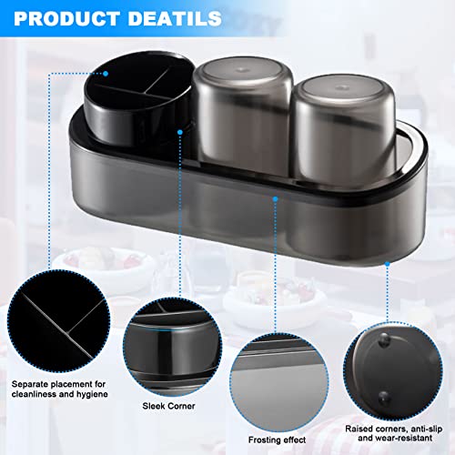 Sitengle 歯ブラシスタンド おしゃれ 電動歯ブラシ対応 歯ブラシ立て 歯ブラシホルダー 置き型 水切りトレー付き 歯磨きコップ収納 歯ブラシ入れ 仕切り 洗面所小物整理 歯磨き粉 髭剃り 洗顔料 お風呂 浴室アクセサリー (一段)