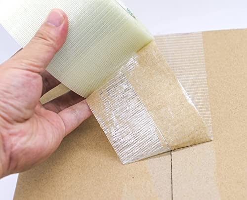 ガラス繊維強化パッキングテープは、PETフィルムとガラス糸材料でコーティングされたゴム接着剤でできています。