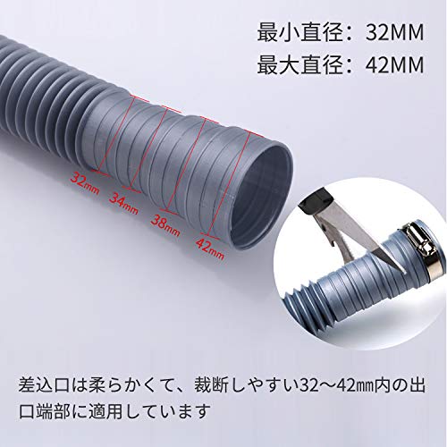 32mm、35mm、38mm、42mmの形成された出口端部に適合し、ホース全体は1.5mの長さで、洗濯機で使用するのに最適です。