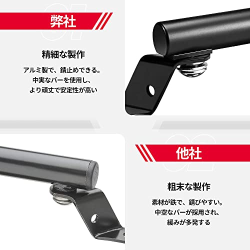 素材:バー部品アルミ製(電着塗装、錆止め、つや出し仕様で摩擦力が強い)、ステー部品鉄製