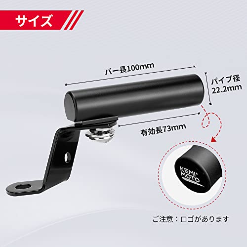 kemimoto バイク ハンドル クランプバー 原付 マルチバー ミラーマウント 有効長さ73mm アルミ製 錆止め マルチホルダー 汎用品 ミラーに取付タイプ ミラーステー