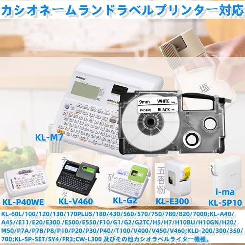 互換 カシオ ネームランド テープ 9mm 白地 黒文字 CASIO Name Land テープカートリッジ XR-9WE セット