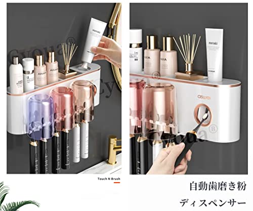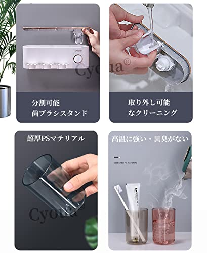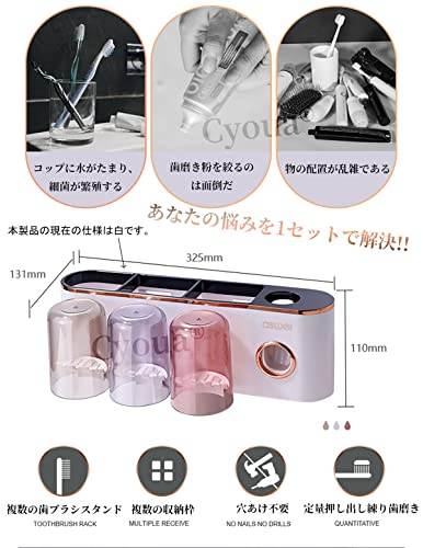 Cyoua 歯ブラシスタンド 歯ブラシホルダー 壁掛け おしゃれ 歯ブラシ立て コップ立て 歯磨きスタンド 歯ブラシたて 浮かせる 歯磨き コップ 洗面所 収納 自動歯磨き粉ディスペンサー 自動歯磨き粉絞り器 トイレタリー収納 多機能 穴あけ不要 衛生 うがいコップ (歯磨きコップ×3)