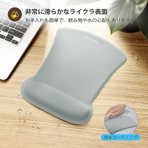 Soqool マウスパッド手首T型白リストレスト一体型マウスパッド滑り止めゴムベース こぼれ防止表面 耐久性良い オフィスや自宅での
