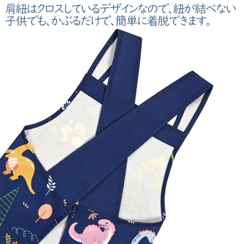 Shiny Flower 子供用エプロン さめ H型 可愛い 前掛け 着脱簡単 動きやすい シワになりにくい 食事用 キッチン 幼稚園 小学生 絵画 書道 お絵描き 50*60cm