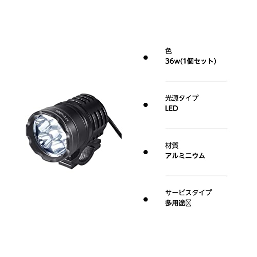 商品仕様 LED Power:36W LEDチップ:CREE チップ 実際効率:26~30W ルーメン:3600LM 照射距離:150メートル 動作電圧:DC12V~80V 本体材質:アルミボディ 防水等級:IP67 発光色:ホワイト 色温度:6000k 長寿命: 約30000時間 重さ:約0.25kg/pcs 配線長さ:40CM 適合車種 ●12V/24V車用 ●ハンドルや、フレームに固定できますので、様々な場所にも取り付けできます。 ●お車の適合に関してはご自身にてご確認ください。