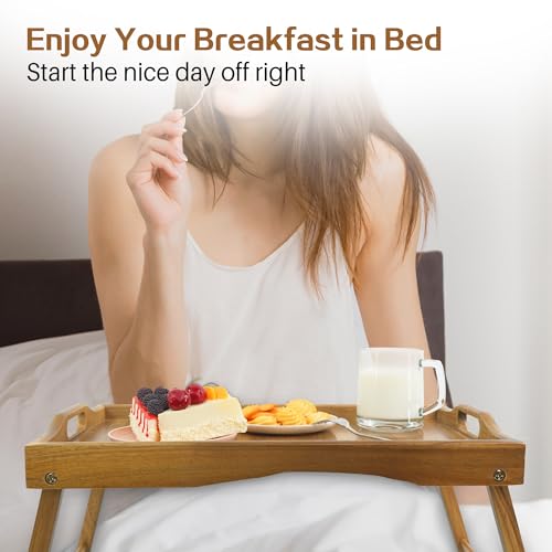 Utoplike ベッドトレイ テーブル 食事用 折りたたみ ブレックファーストトレイ 大き 朝食トレイ ローテーブル アカシア木製 ノートパソコン 仕事 ソファ パーティー用