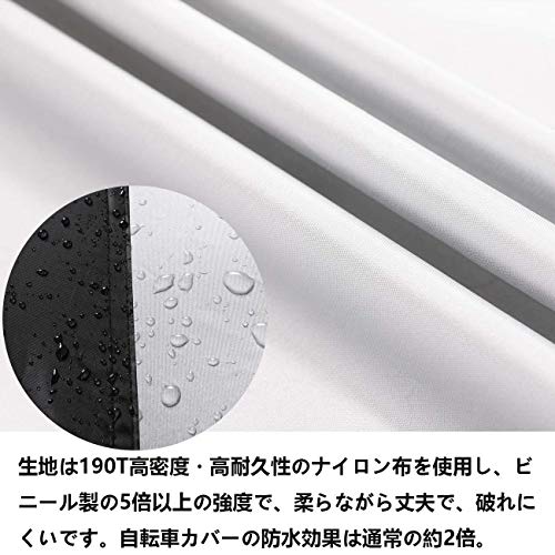生地は190T高密度・高耐久性のナイロン布を使用し、ビニール製の5倍以上の強度で、柔らながら丈夫で、破れにくいです。雨、ほこり、雪、霜、日光、いたずらなどから、大切な自転車をしっかり守ります。