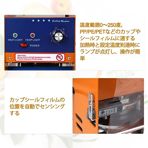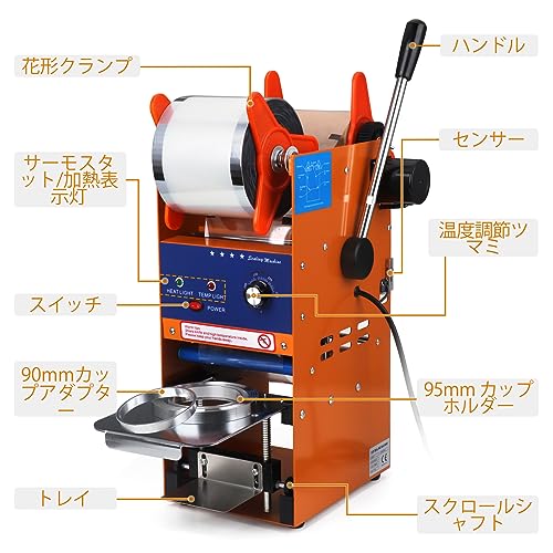 ※商品仕様: 製品モデル:JT-05 寸法:290*240*495mm ボディ材質:金属 対応カップサイズ:カップの口径90/95mm 電圧:110V/60Hz (日本で使用できます、変圧器は不要です) パワー:350W 生産速度:300~500カップ/時 重量:12kg ※フィルム材料およびカップ封止温度: PE(ポリエチレン):170℃ PP(ポリプロピレン):170℃-200℃ PS(ポリスチレン):180℃ .フィルム:120℃-180℃ PET(ポリエステル):160℃-200℃ インストールについては、次のビデオを参照してください: https://www.amazon.co.jp/clouddrive/share/Y9FyVtnUA6F8odnW5HAVwPyoTIWwpskk94dEn6sga3u アフターサービス: 品質保証:1年間 もし商品に何が問題発生されだばいは、いつでもご連絡をください お客様の問題を解決するために我々は最善を尽くします。どうぞよろしくお願いします ※製品が更新されると、外観が変更された場合は、実際の製品を参照してください。それをご注意ください ※弊社はできるだけ早く製品を送ります ※ご不明な点がございましたらお気軽にご連絡くださいませ。宜しくお願い致します