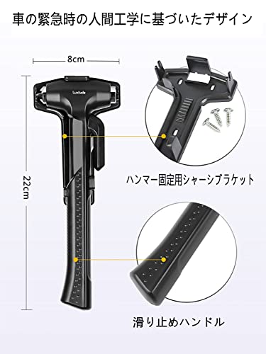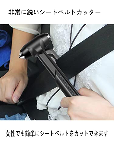 緊急脱出用ハンマー 2点セット 3 in 1 車用ハンマー 窓ガラス破れ シートベルトカッター付き 緊急時に車の窓を迅速に破る シートベルトの切断 自動車と家庭の両用レスキューハンマー 頑丈と耐用性がいい 固定用ホルダー付属 (ブラック)