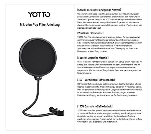 YOTTO ポップガード マイクのポップブロッカー直径15.5cm二重張り ノイズ防止 ネット…