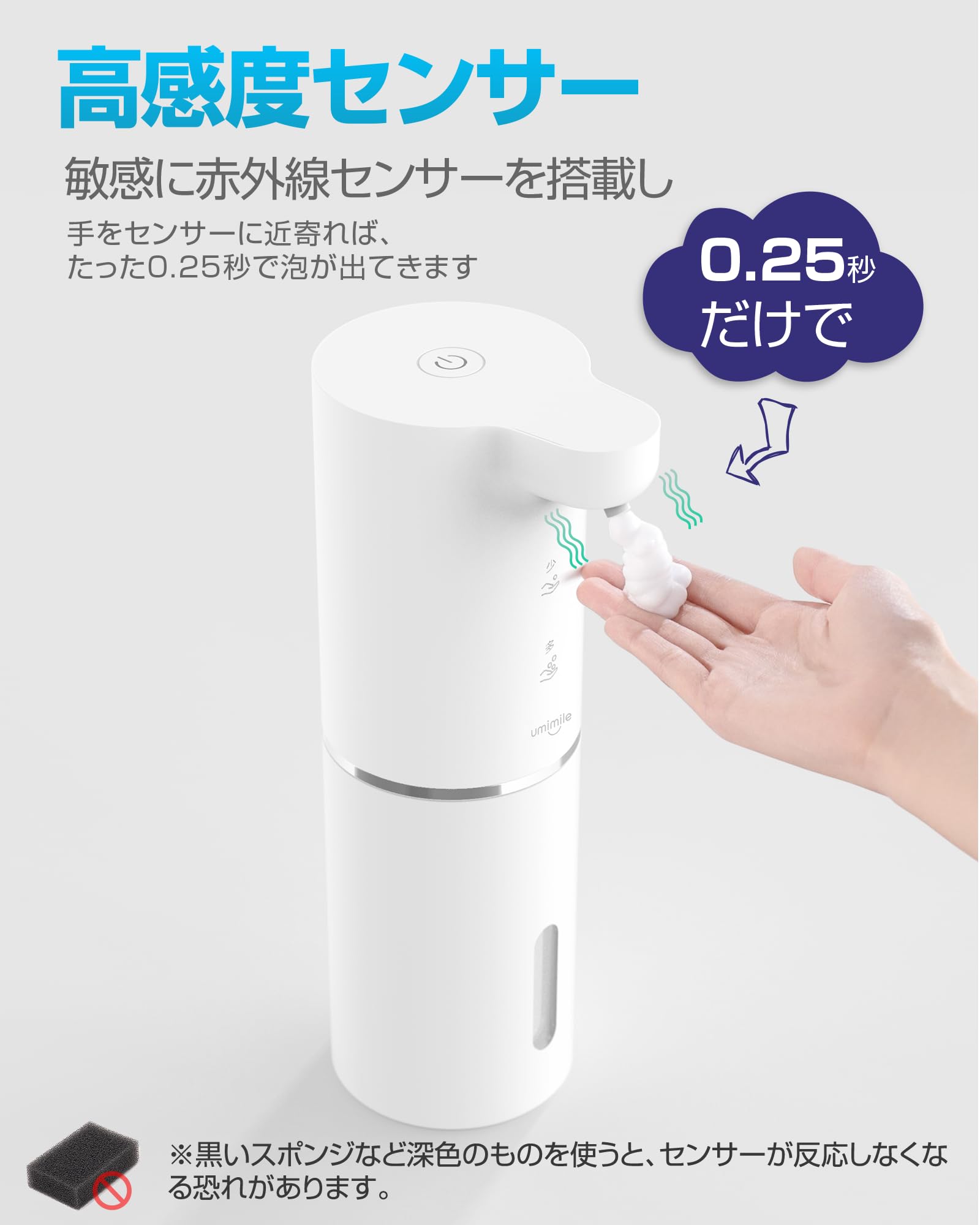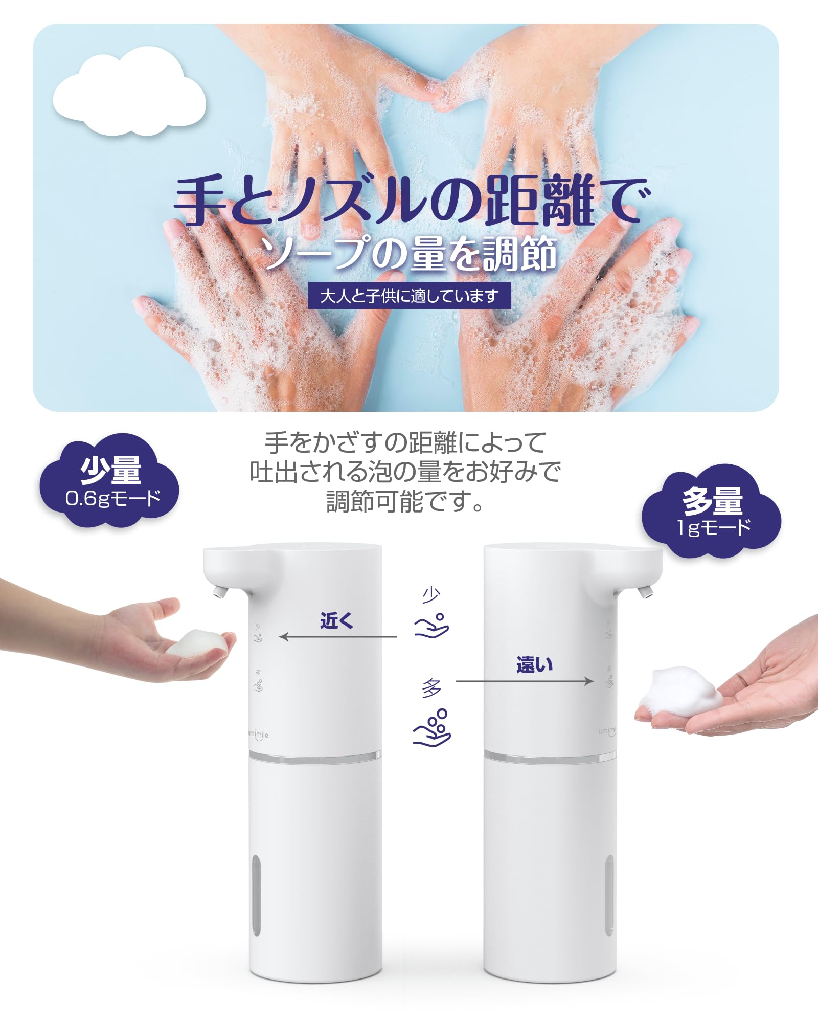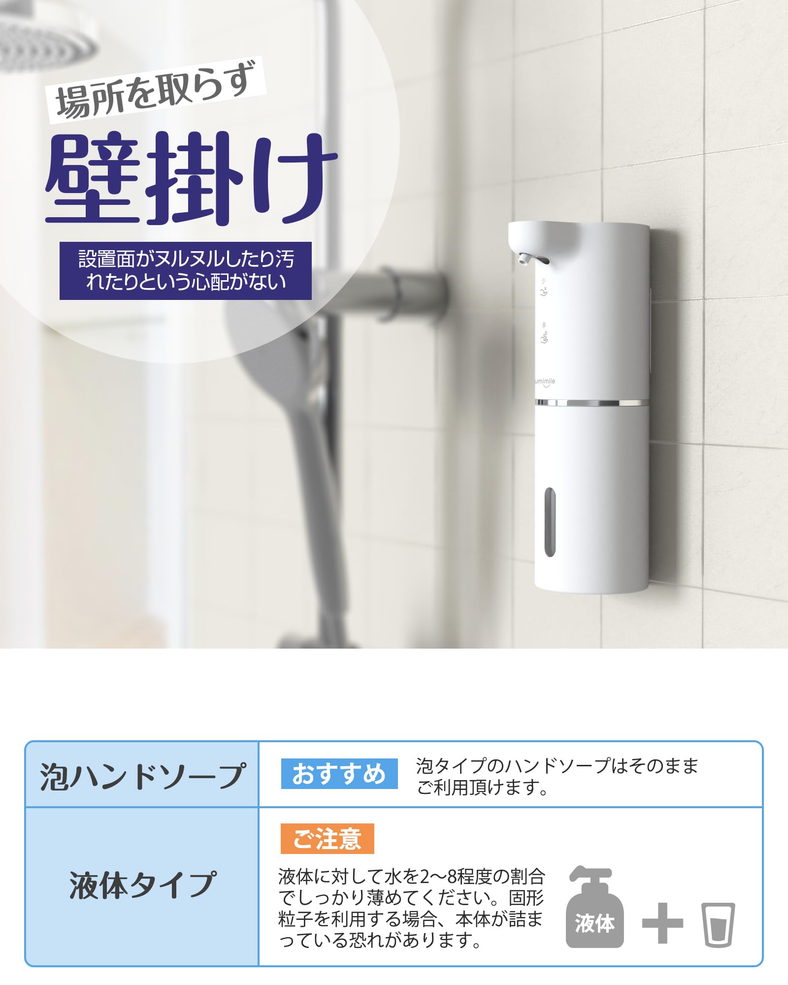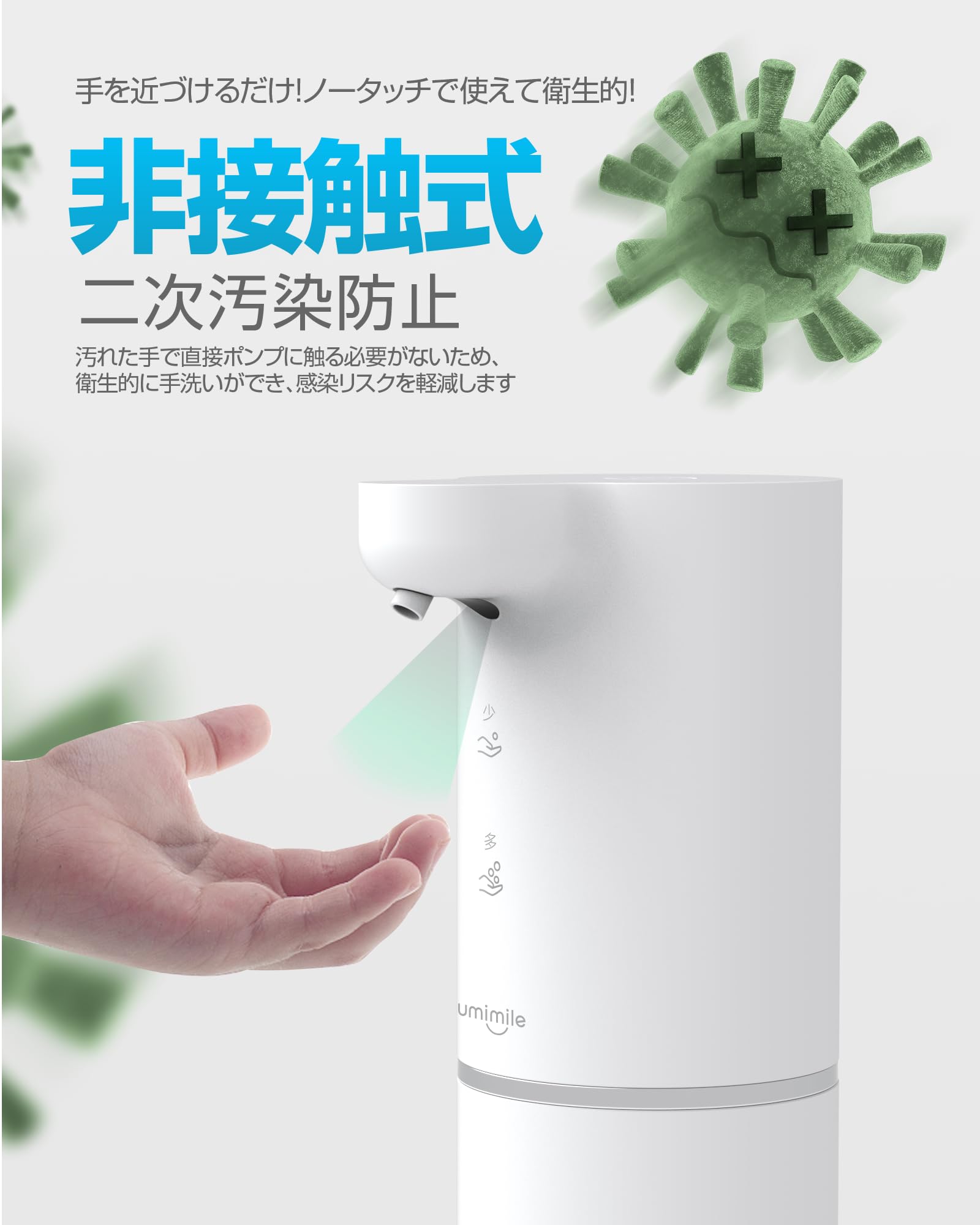 自动皂液器无需用脏的手直接触碰泵,干净卫生,周围不易脏。 只需揉捏手,就能轻松排出量的皂液,即使在黑胶、感冒的流行时期和食物中毒的季节也能有效除菌。