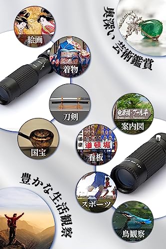 Wallfire 単眼鏡 望遠鏡 高倍率 望遠レンズ 軽量 小型 収納袋 ミラークロス付 ズーム式 持ち運びに便利 単眼きょう 単眼望遠鏡 スマホ撮影 スポーツ観戦 運動会 コンサート 山登り ブラック