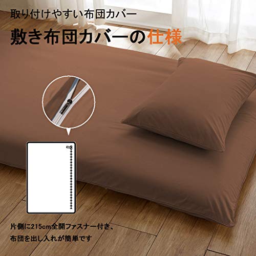敷き布団カバー シングル 綿100% 敷布団カバー 敷きぶとんカバー 敷きカバー 敷きシーツ 敷カバー 洗い替え 防ダニ 抗菌 (ブラウン, シングル・105×215cm)
