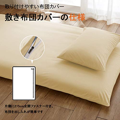 カバーの端から端まで大きく開く、全開ファスナーなので、お布団の出し入れしやすく、大変便利です。