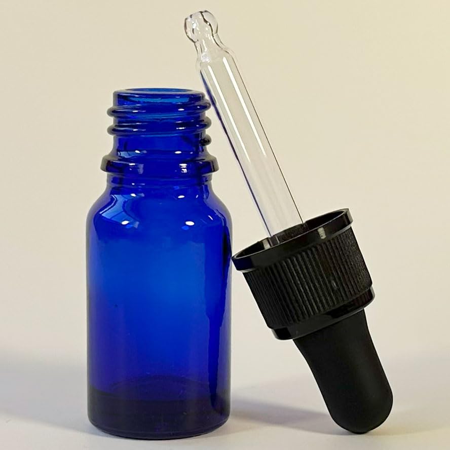 PIPIBA (24個入り) 10ml丸頭スポイトボトル ガラス製遮光瓶 アロマオイル瓶 ドロッパーボトル 香水瓶 (青色)