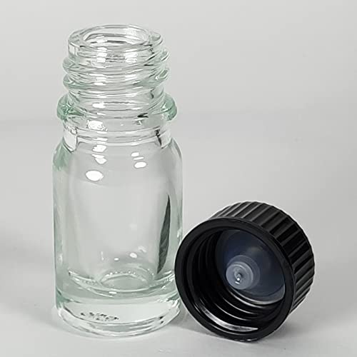 PIPIBA (24個入り) 5ml 黒色蓋付き遮光ボトル エッセンシャルオイル用ガラス瓶 アロマオイル小分けボトル 香水保存容器 (透明)