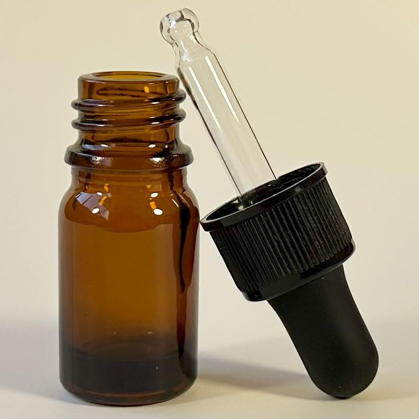 PIPIBA (24個入り) 5ml丸頭スポイトボトル ガラス製遮光瓶 アロマオイル瓶 ドロッパーボトル 香水瓶 (茶色)