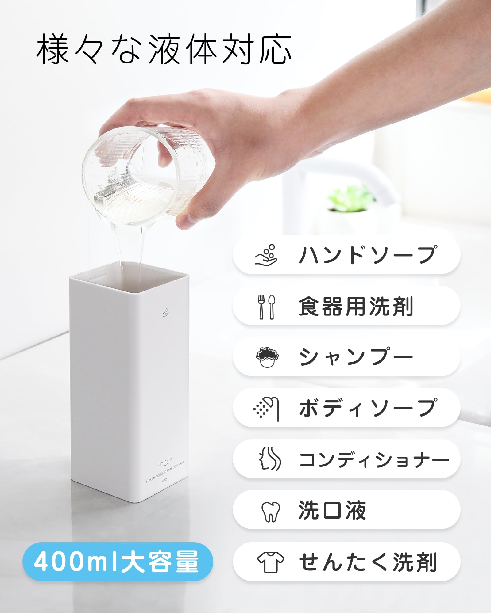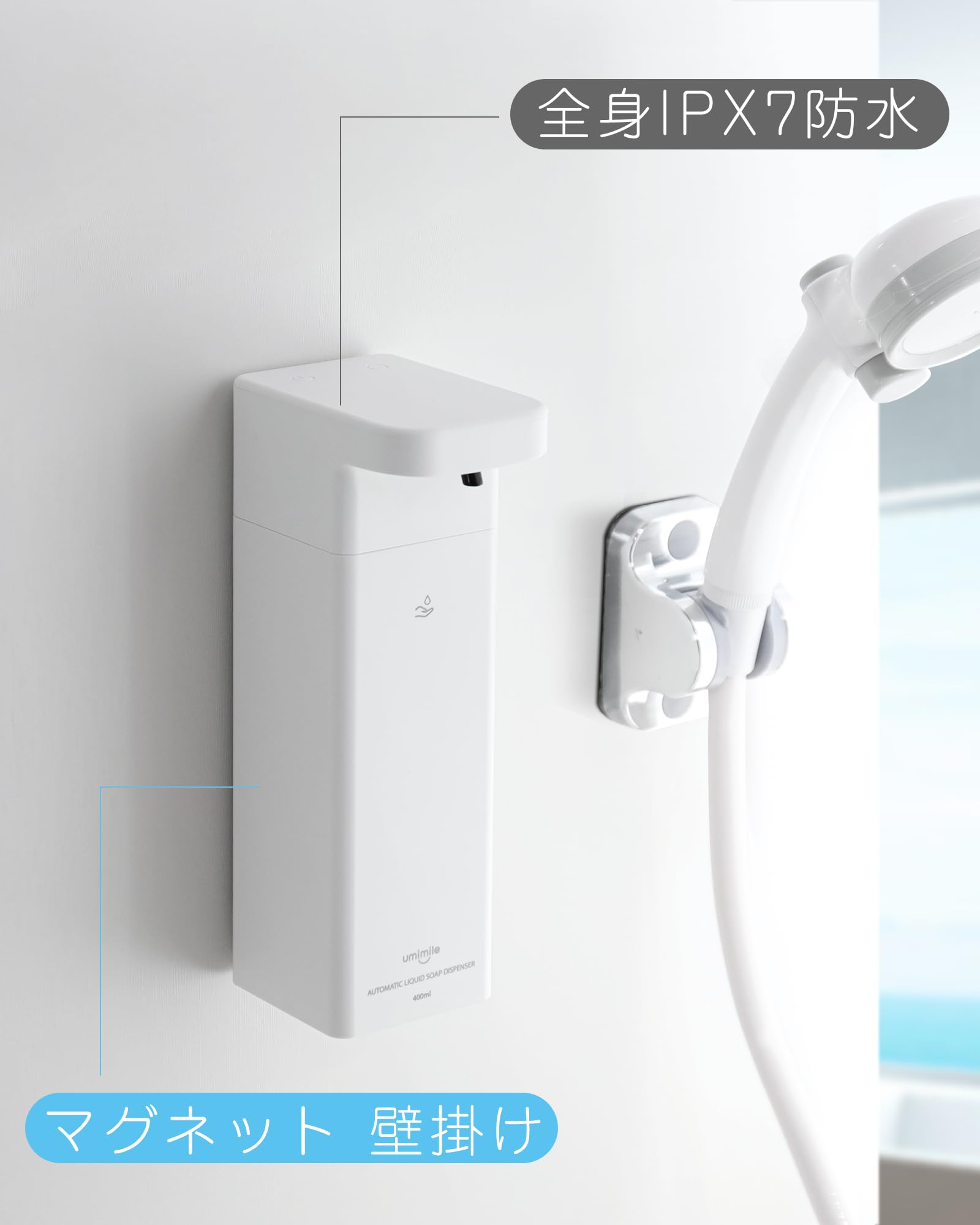 Umimile ソープディスペンサー 自動 シャンプーディスペンサー マグネット 液体でる 食器用洗剤 充電式 400ml容量 IPX6防水 ホワイト