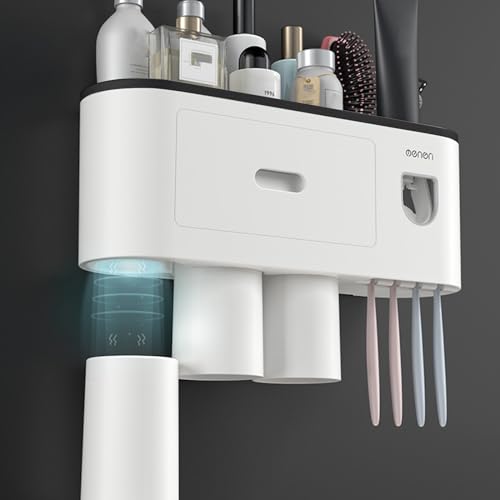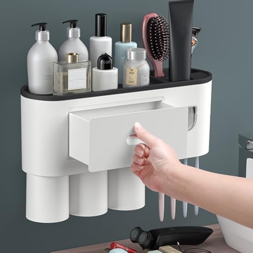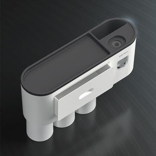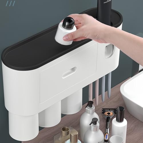 Yuehuam 歯ブラシスタンド 壁掛け 歯ブラシホルダー おしゃれ 歯ブラシ立て 歯磨き粉ホルダー 電動歯ブラシスタンド 3カップ 浮かせる 収納 歯ブラシたて 歯磨き コップ 洗面所 自動歯磨き粉絞り器 穴あけ不要 トイレタリー収納 多機能 コップ立て 家族 ブラック