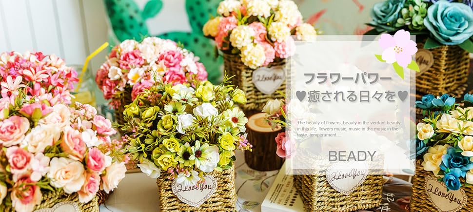• BEADYから鮮やかカントリースタイル、編み円型フラワーバスケットの造花が登場。入れ物付きで、よりきれいに。水やりやお手入れ不要の花束。花粉アレルギーの方も安心。
