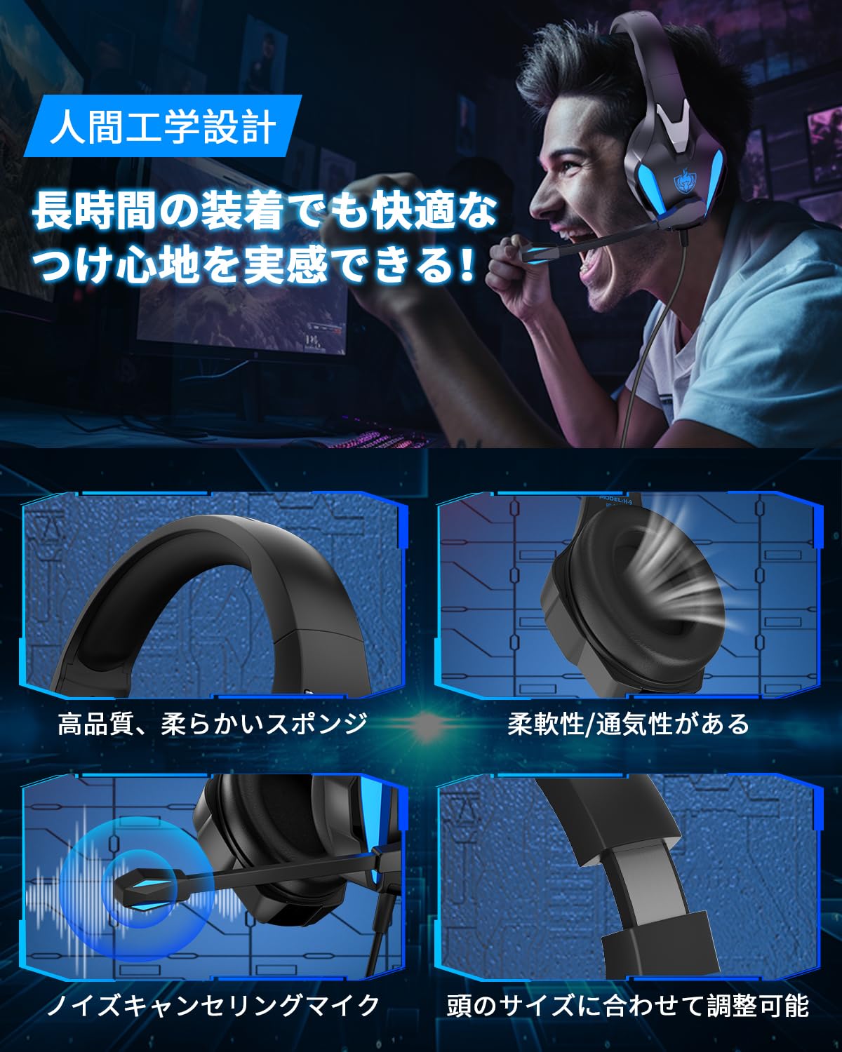 柔らかく肌触りが良い材質を採用して、快適な装着感で長時間のゲームプレイをサポート!