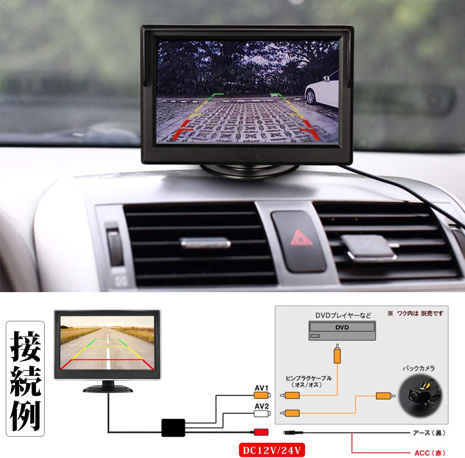 OBEST 7インチモニター 2系統の映像入力 12V-24V車用 ミニオンダッシュ液晶モニター 高画質「800*480」モニター 電源直結 バック切替可能 AV1/AV2入力