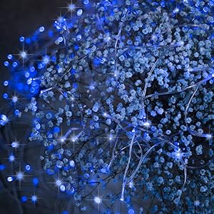 イルミネーションライト色:ブルー青色 ワイヤ色:透明 LEDランプビーズ数:1000 LEDs 防水レベル:IP44 入力:100V, 50/60Hz 出力: 30V パワー:6W ランプビーズからコントローラまでの距離:3メートル 材料:銅線とエコプラスチック 使用寿命が30000時間以上 重さ:1730g