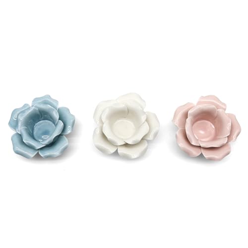 Lukitas 蓮のティーライトキャンドルホルダー、ヴォーティブフラワーティーライトホルダー、テーブルトップ祭壇パーティーウェディングホームデコレーション、セラミック製、2個セット(ピンク)