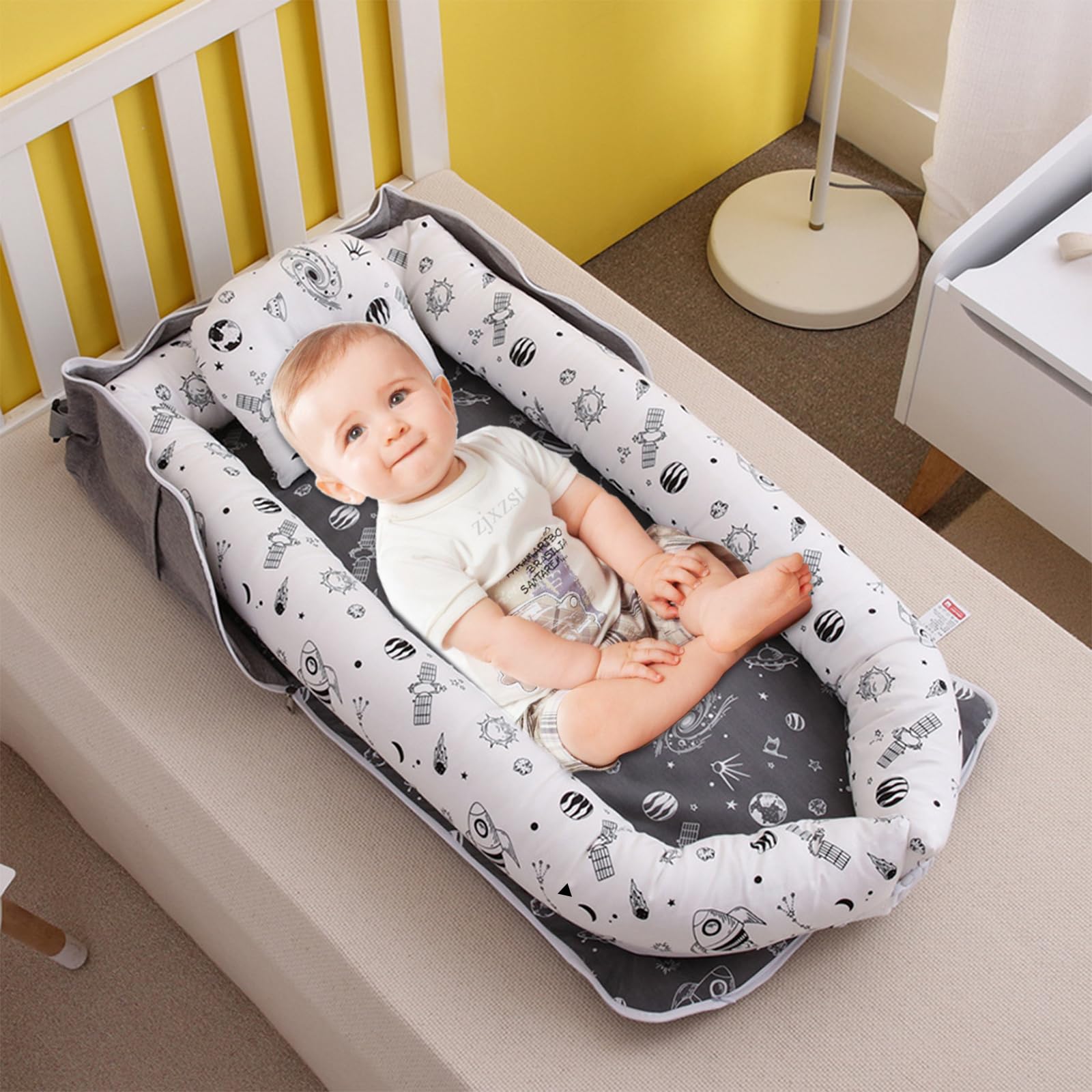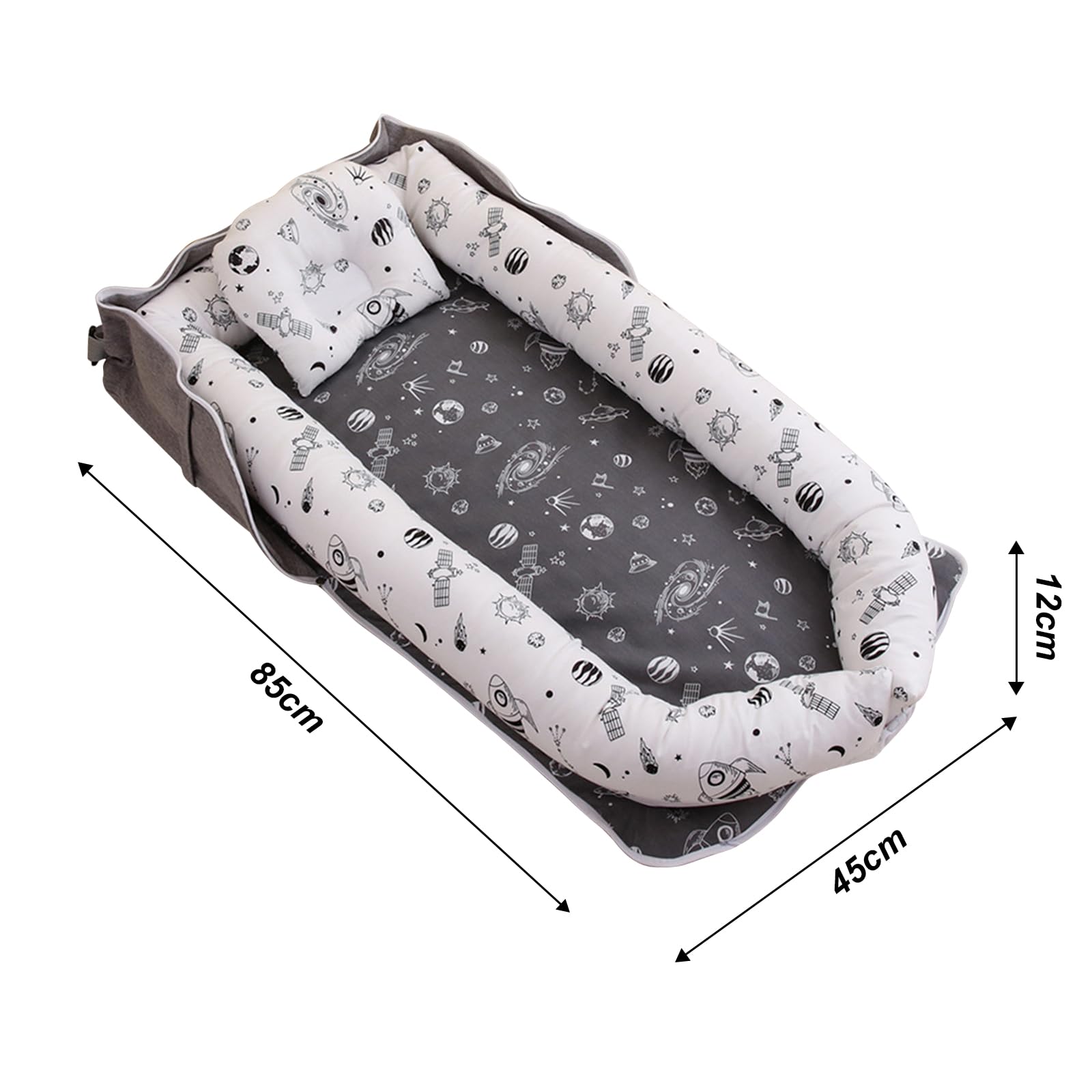 iFCOW ベビーベッド 新生児 ベッドインベッド 折りたたみ式 枕付き 携帯型ベビー布団 添い寝ベビーベッド 通気性に富む 洗濯可能 出産祝い 85*45*12CM 宇宙天体
