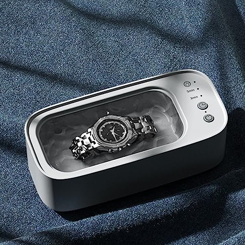 超音波洗浄機 超音波クリーナー メガネ洗浄機 入れ歯 超音波洗浄器 アクセサリー 時計 歯ブラシ350ml 大容量47000Hz 眼鏡 貴金属 パワフル洗浄 ジュエリー 金属 メガネクリーナー 小型 家庭用 (ホワイト)