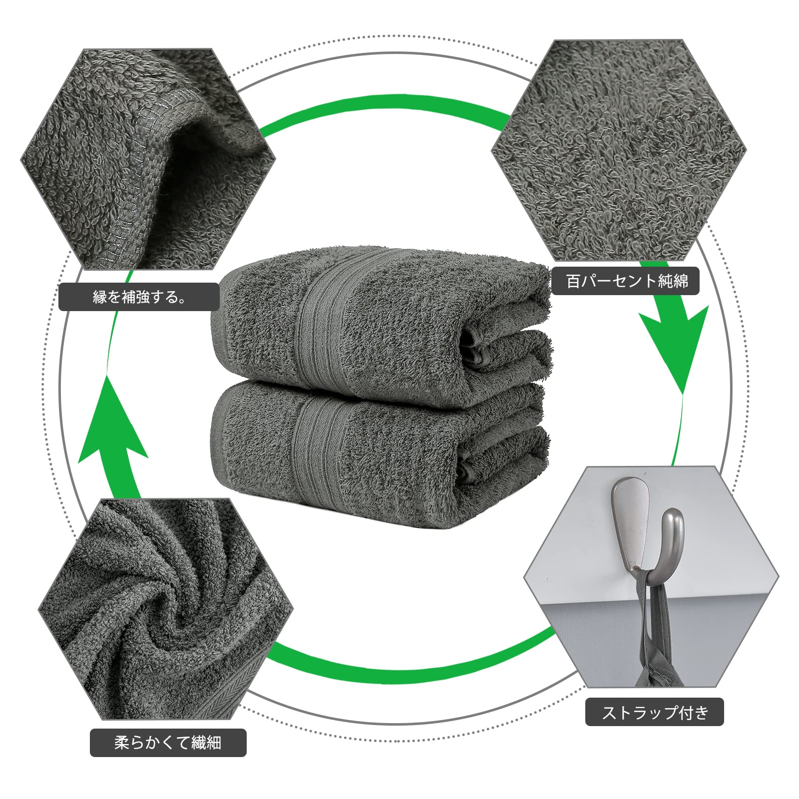 は高品質のコーマ素材で作られています。 不要な繊維を取り除き、より強くて滑らかな糸を作ります。 このプロセスにより、バスタオルの抜け毛が少なくなり、長持ちします