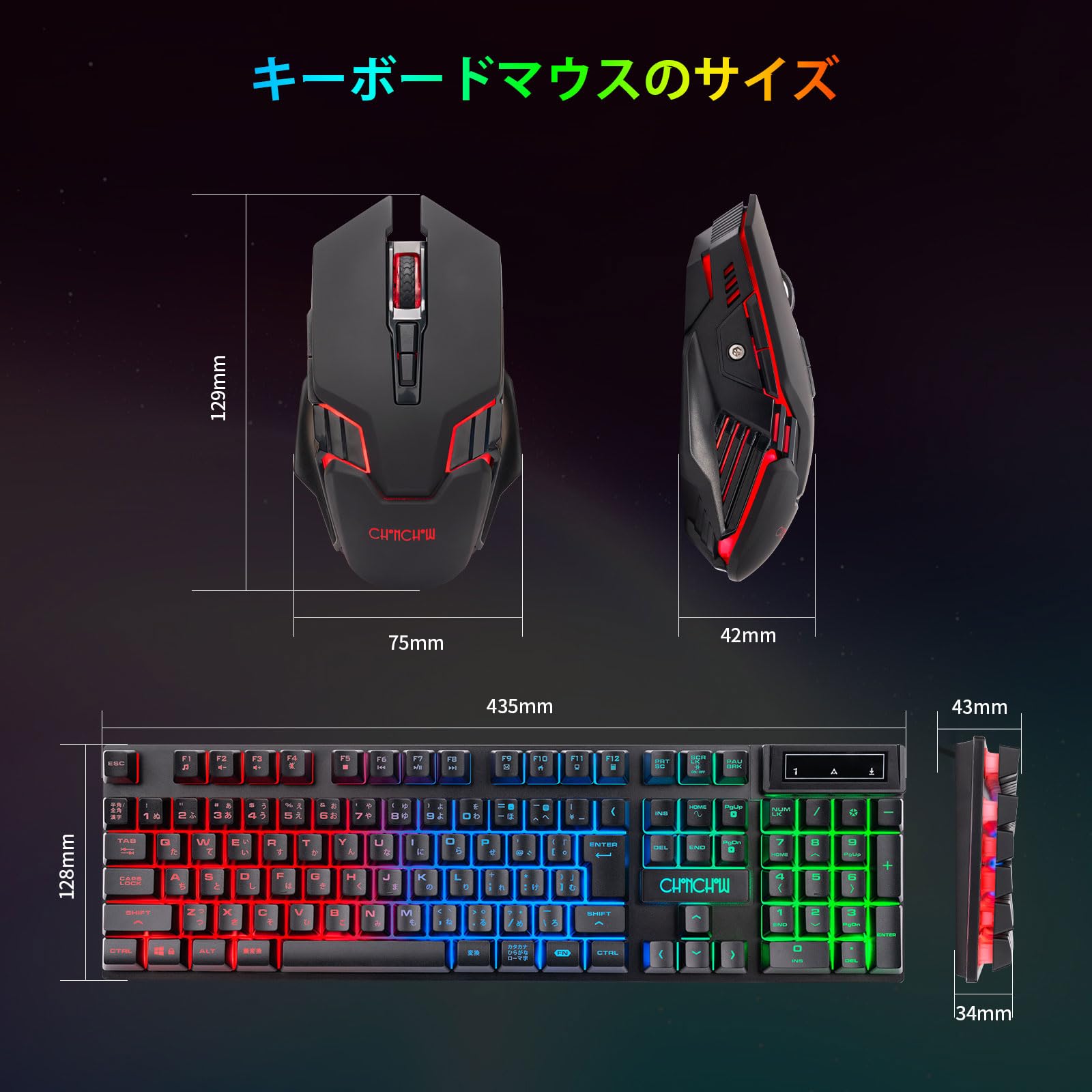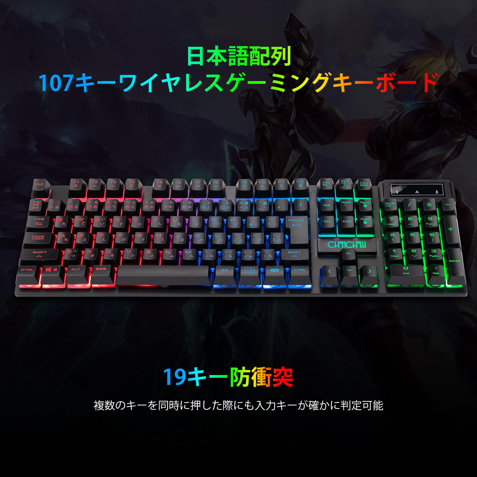 CHONCHOW ワイヤレスゲーミングキーボードマウスセット 2500mAh+500mAh 107キーLEDバックライトRGB 2.4GHz無線 充電式 日本語配列 19キー防衝突 4段階DPIマウス ps5 ps4 PC/Windows/Mac対応 日本語説明書付き G220