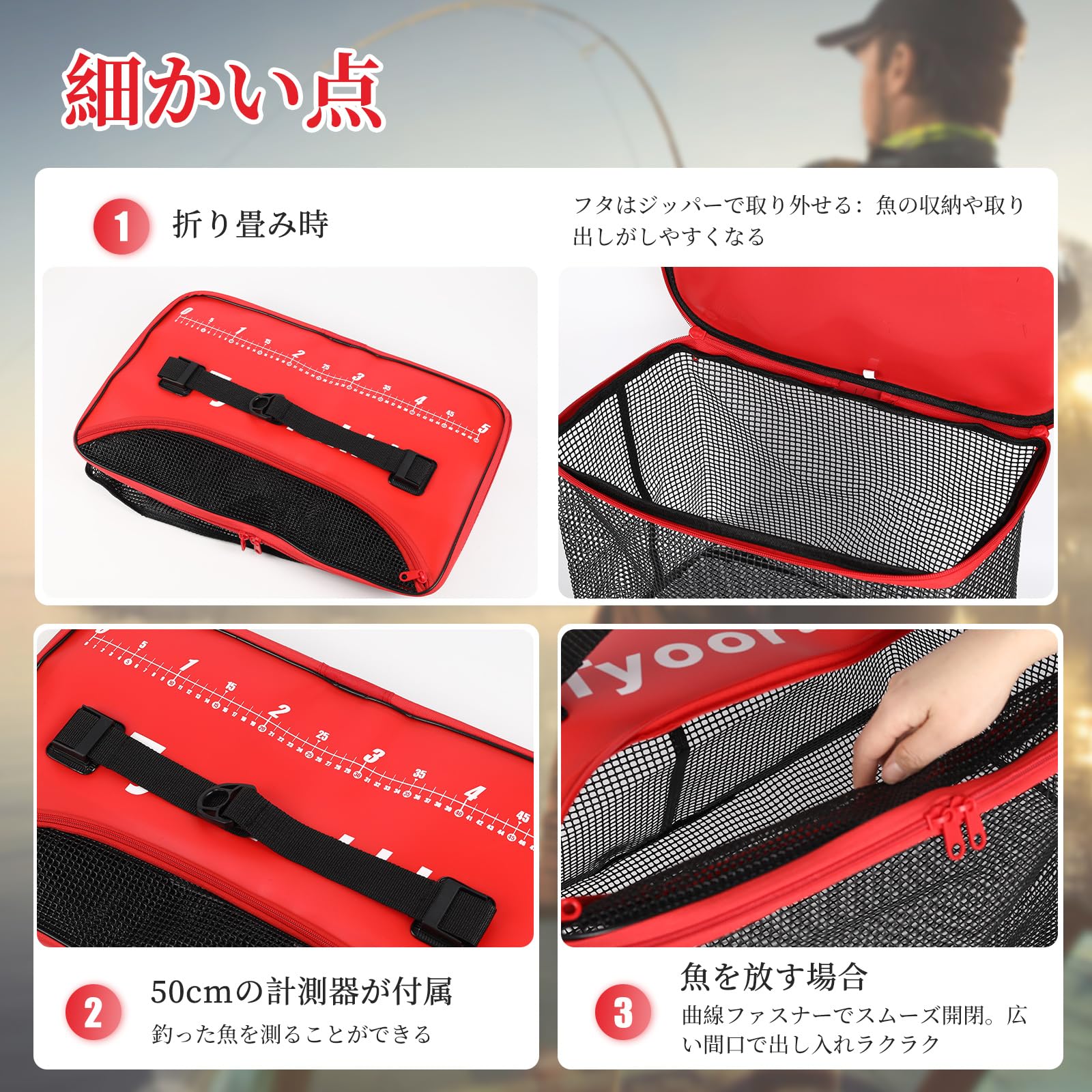 上蓋には簡易のメジャー配置して、最長35cmの魚の大きさを確認できます