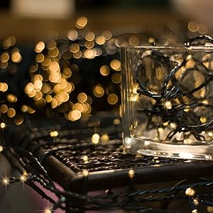 イルミネーションライト色:シャンパンゴールド ワイヤ色:ダークグリーン LEDランプビーズ数:100 LEDs 防水レベル:IP44 入力:100V, 50/60Hz 出力: 30V パワー:3.6W ランプビーズからコントローラまでの距離:3メートル 材料:銅線とエコプラスチック 使用寿命が30000時間以上 重さ:271g