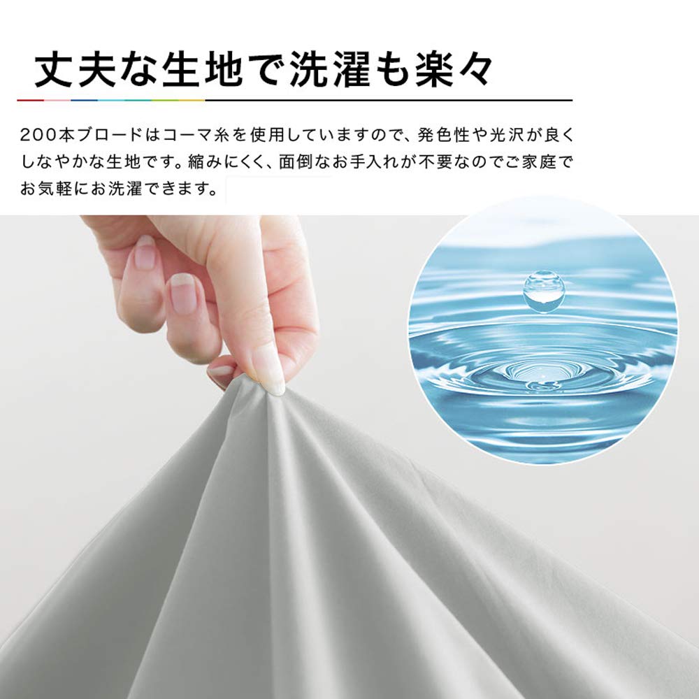 良質で高価な40番手の超極細糸を使用し、打ち込み本数は200本です。良質な綿を丁寧に織り上げることにより、肌ざわりのやさしい生地に仕上がりました。目詰みも良く、耐久性にも優れたしっかりとした生地です。