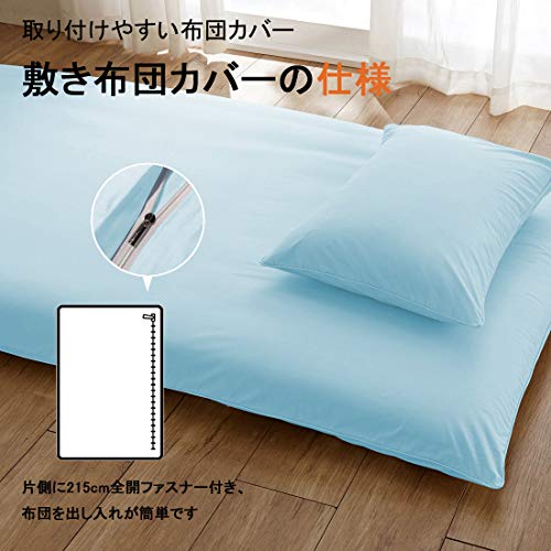 敷き布団カバー シングル 綿100% 敷布団カバー 敷きぶとんカバー 敷きカバー 敷きシーツ 敷カバー 洗い替え 防ダニ 抗菌 (ライトブルー, シングル・105×215cm)