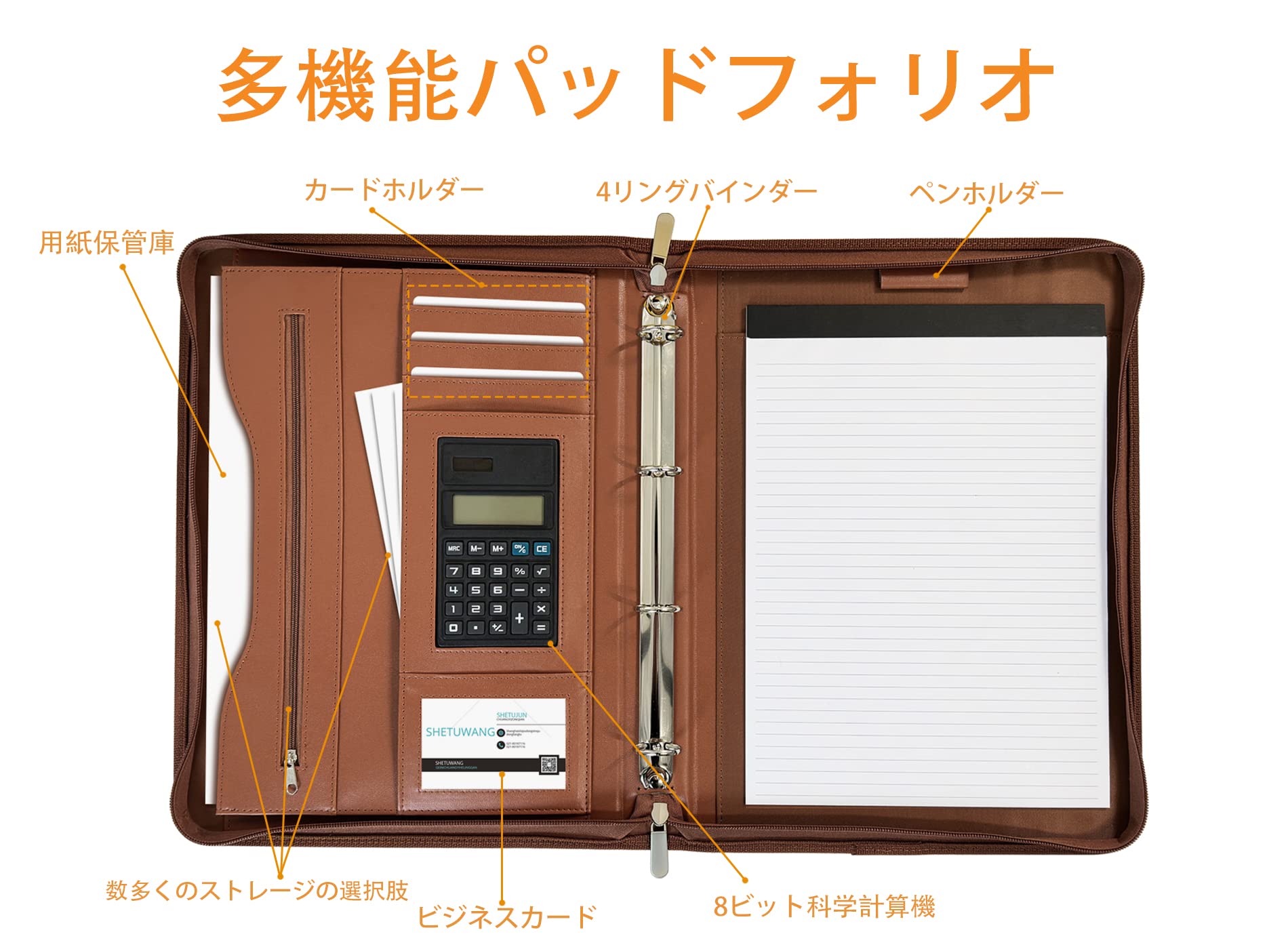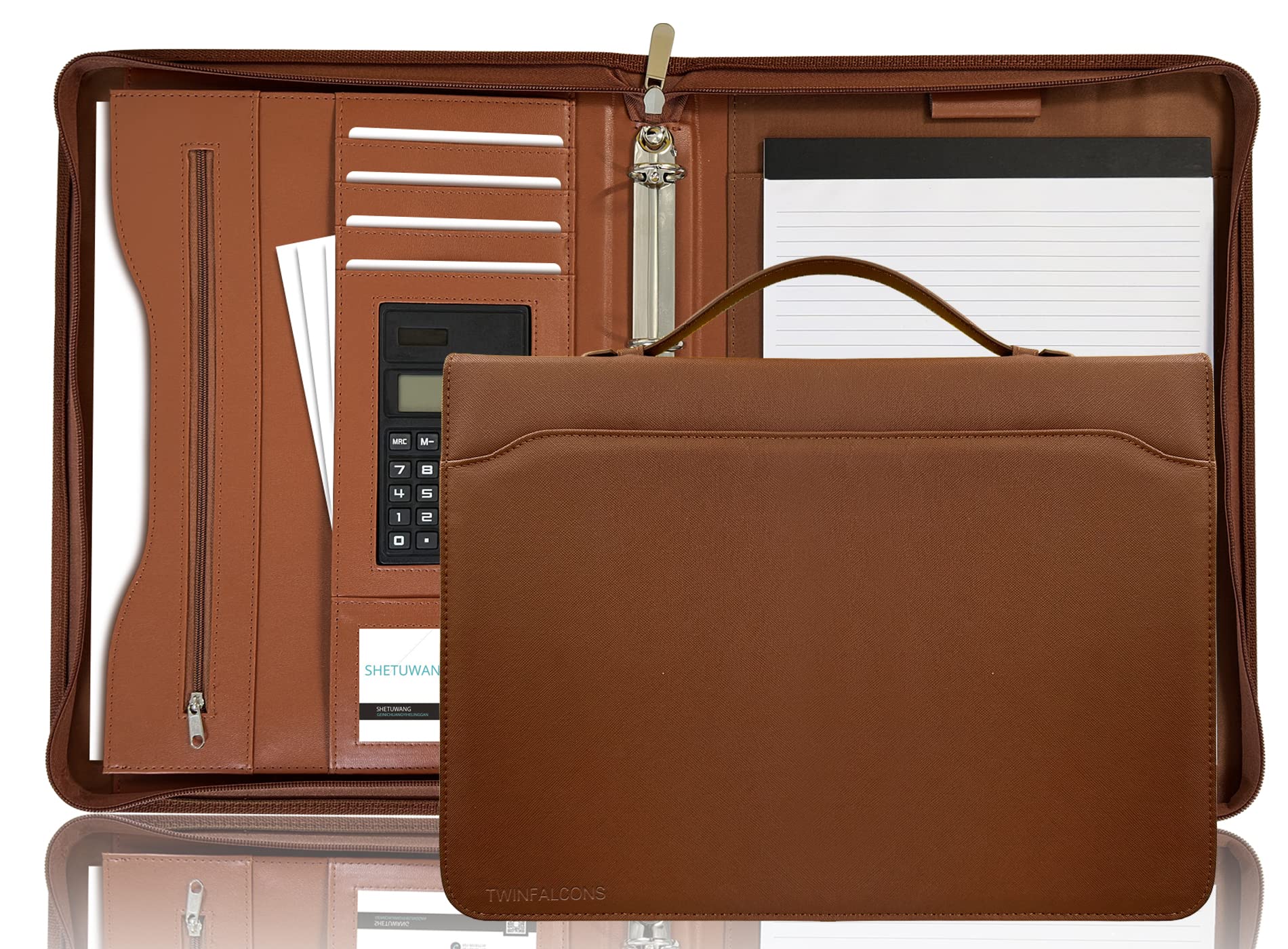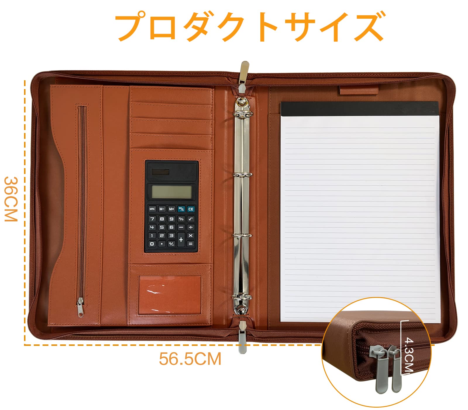 リングバインダーポートフォリオ フォルダーパッドフォリオ ハンドルファスナー付 ビジネスパッドフォリオポケット 太陽エネルギー計算機 カードキャッシュオーガナイザー ドキュメントプランナー ビッグ収納ポケット リーガルパッドホルダー 書類 電話 男性 女性 14.2*10.5
