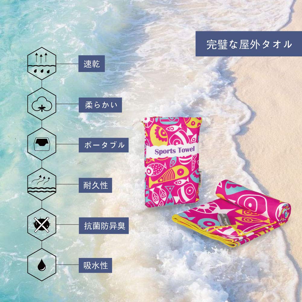 4Monster スイムタオル ビーチタオル 収納袋付き ポータブル 柔らかい マイクロファイバータオル 水泳用 旅行タオル 吸水速乾 可愛い 軽量 通気性 防砂 プール 海水浴