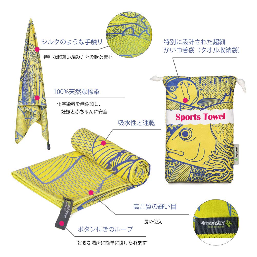 4Monster スイムタオル ビーチタオル 収納袋付き ポータブル 柔らかい マイクロファイバータオル 水泳用 旅行タオル 吸水速乾 可愛い 軽量 通気性 防砂 プール 海水浴