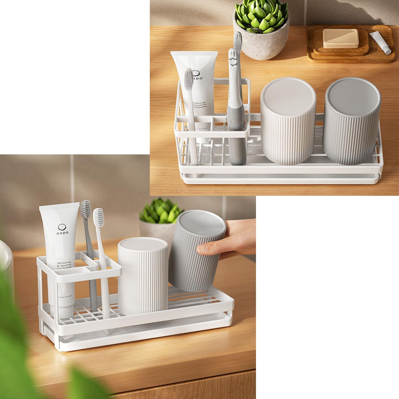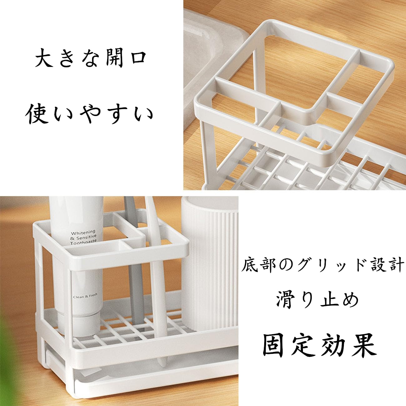 Sitengle 歯ブラシスタンド おしゃれ 電動歯ブラシ対応 歯ブラシ立て 大容量 歯ブラシホルダー 置き型 水切りトレー付き 歯磨きコップ収納 歯ブラシ入れ 仕切り 洗面所小物整理 歯磨き粉 髭剃り 洗顔料 お風呂 浴室アクセサリー (二段式)
